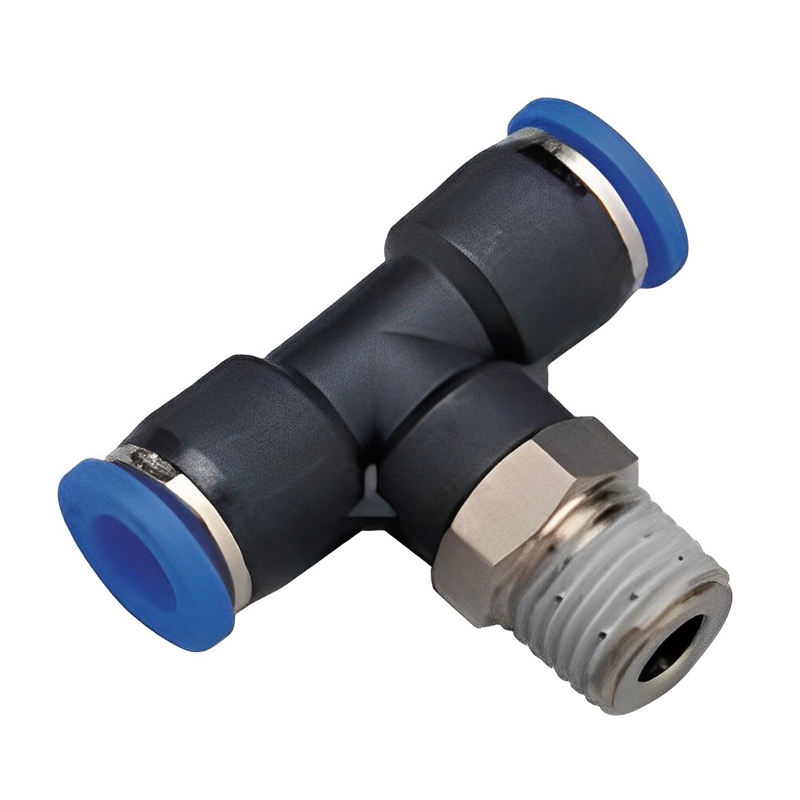 CONECTOR TEE 1/4″ OD X 1/8″ NPTM X 1/4″ OD PUSH PLASTICO